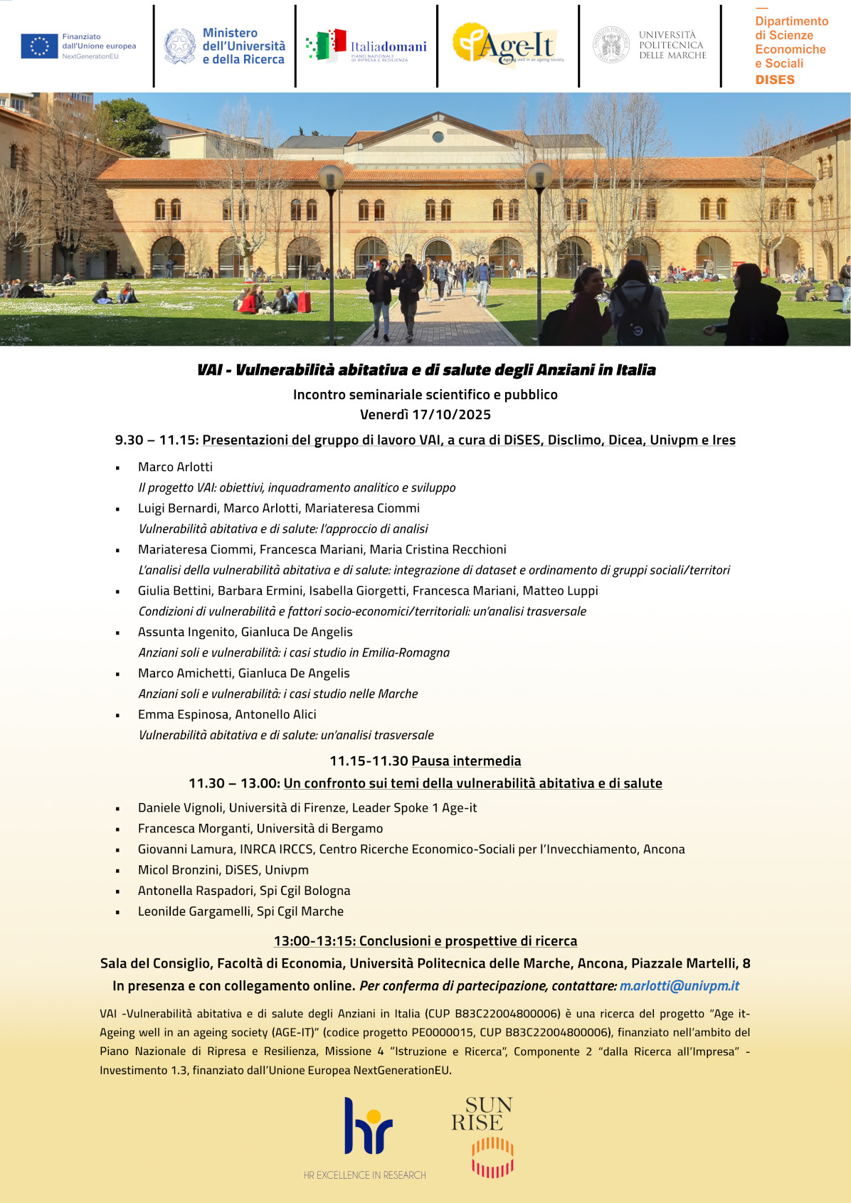 VAI - Vulnerabilità abitativa e di salute degli Anziani in Italia - Incontro seminariale scientifico e pubblico