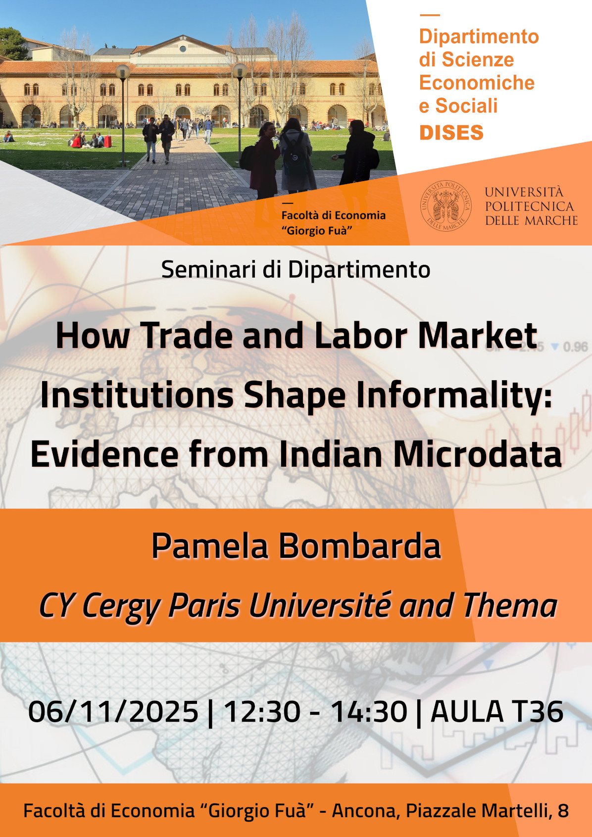 Seminario di Dipartimento: "How Trade and Labor Market Institutions Shape Informality: Evidence from Indian Microdata" di Pamela Bombarda