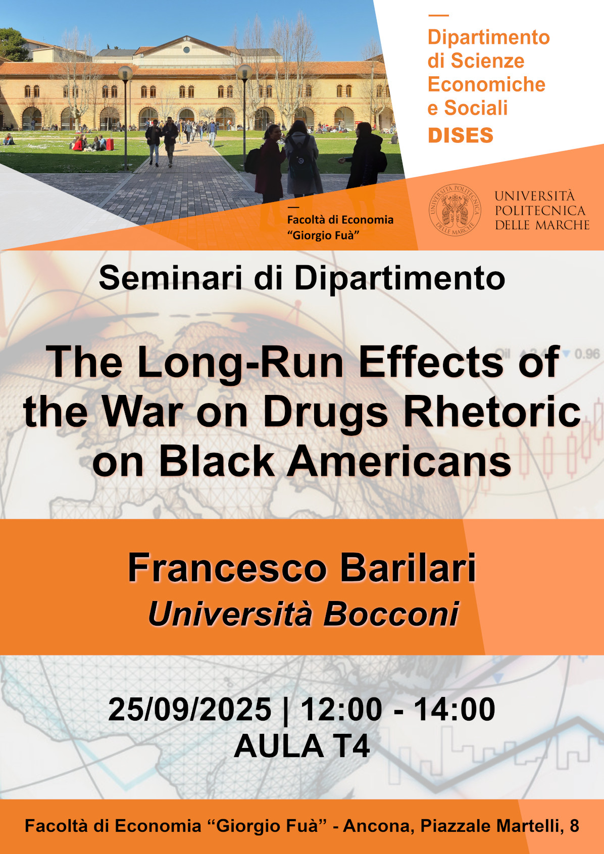 Seminario di Dipartimento: "The Long-Run Effects of the War on Drugs Rhetoric on Black Americans" di Francesco Barilari
