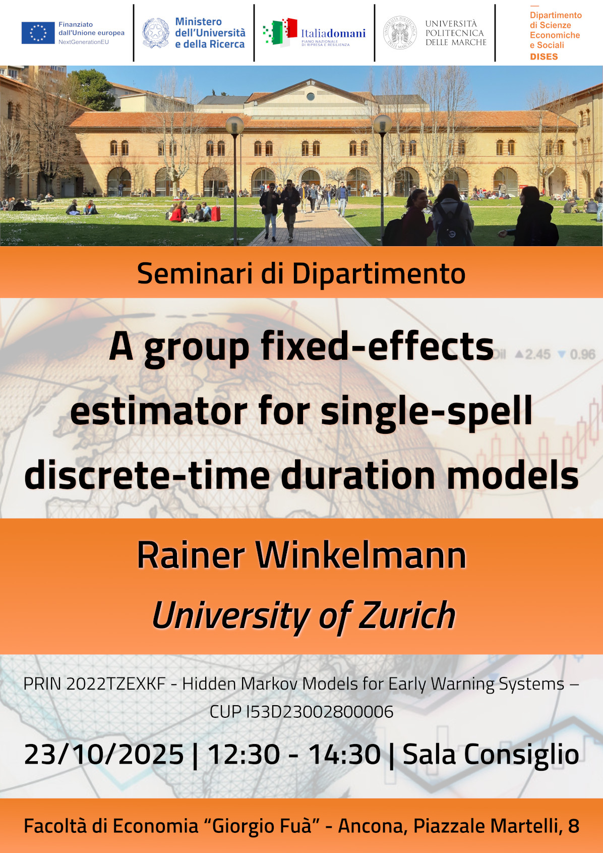 Seminario di Dipartimento: "A group fixed-effects estimator for single-spell discrete-time duration models" di Rainer Winkelmann